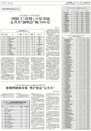 - 《阿拉丁》首周1.29亿夺冠 五月天“演唱会”破3000万