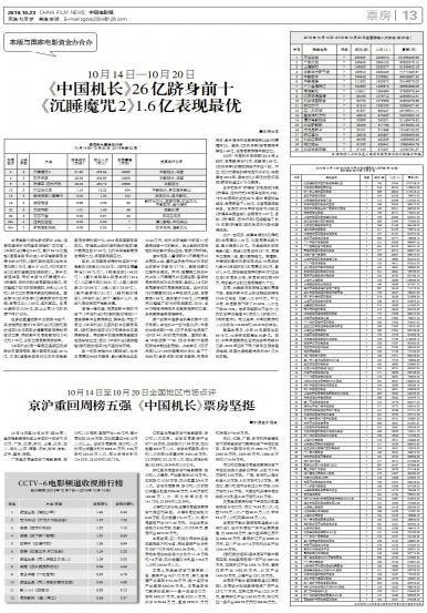 - 京沪重回周榜五强 《中国机长》票房坚挺