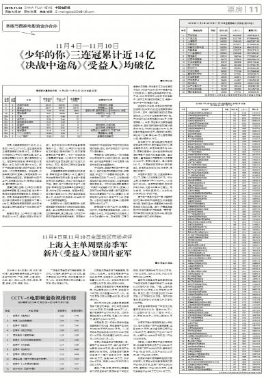 - 《少年的你》三连冠累计近14亿 《决战中途岛》《受益人》均破亿