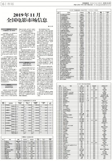 • 2019年11月全国电影市场信息