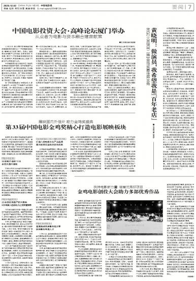 本报讯 第33届中国电影金鸡奖系列活动于11月25日至28日在厦门举办。金鸡影展作为金鸡奖系列活动之...