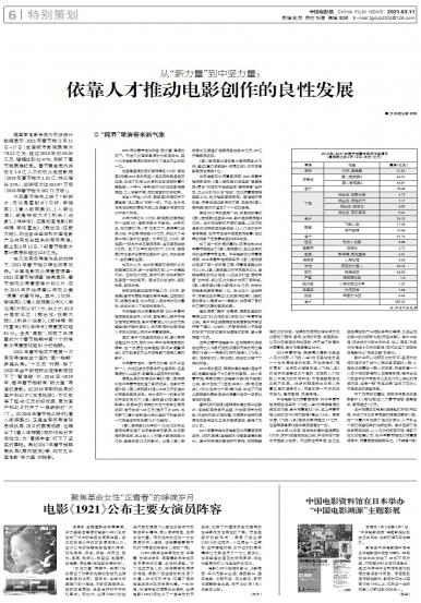 - 依靠人才推动电影创作的良性发展