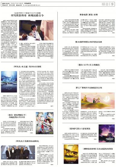 本报讯 电影《阿凡达:水之道》已确定将于12月16日在全国IMAX影院盛大公映,中国观众...