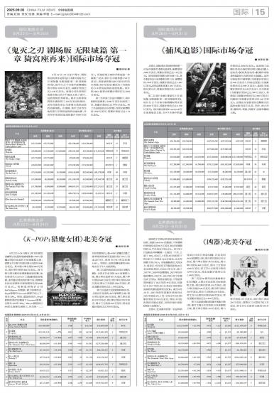 - 《鬼灭之刃 剧场版 无限城篇 第一章 猗窝座再来》国际市场夺冠